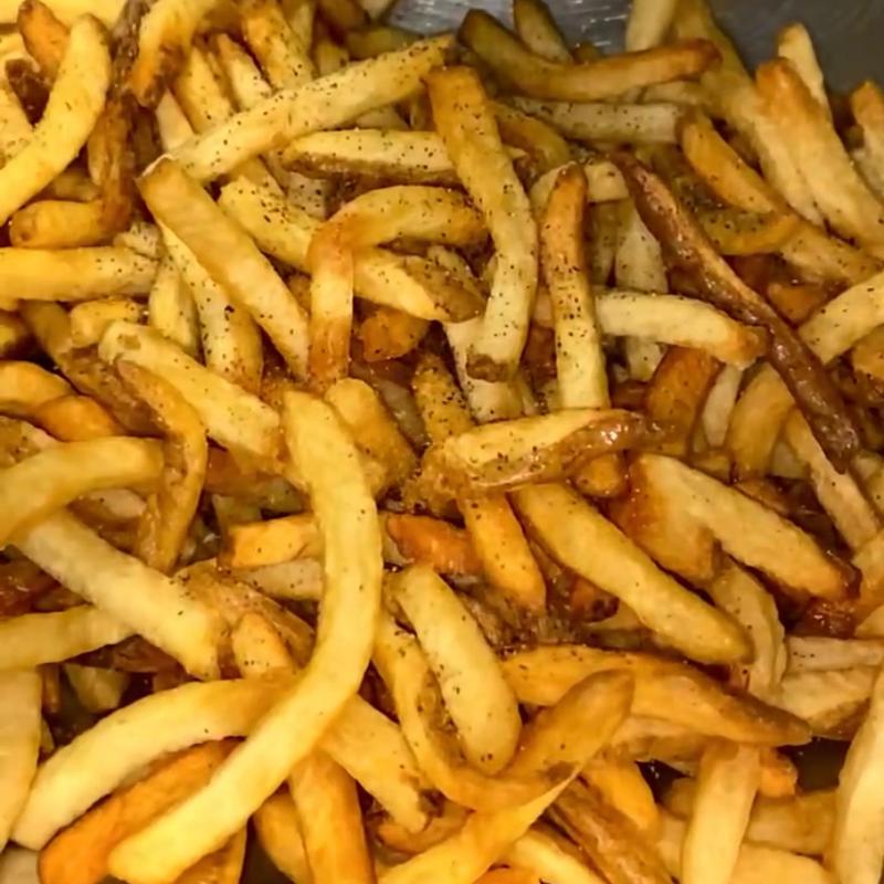 Pit beef, lettuce, tomato, mayo, American cheese, fried peppers & fried onions& fries (hots optional)